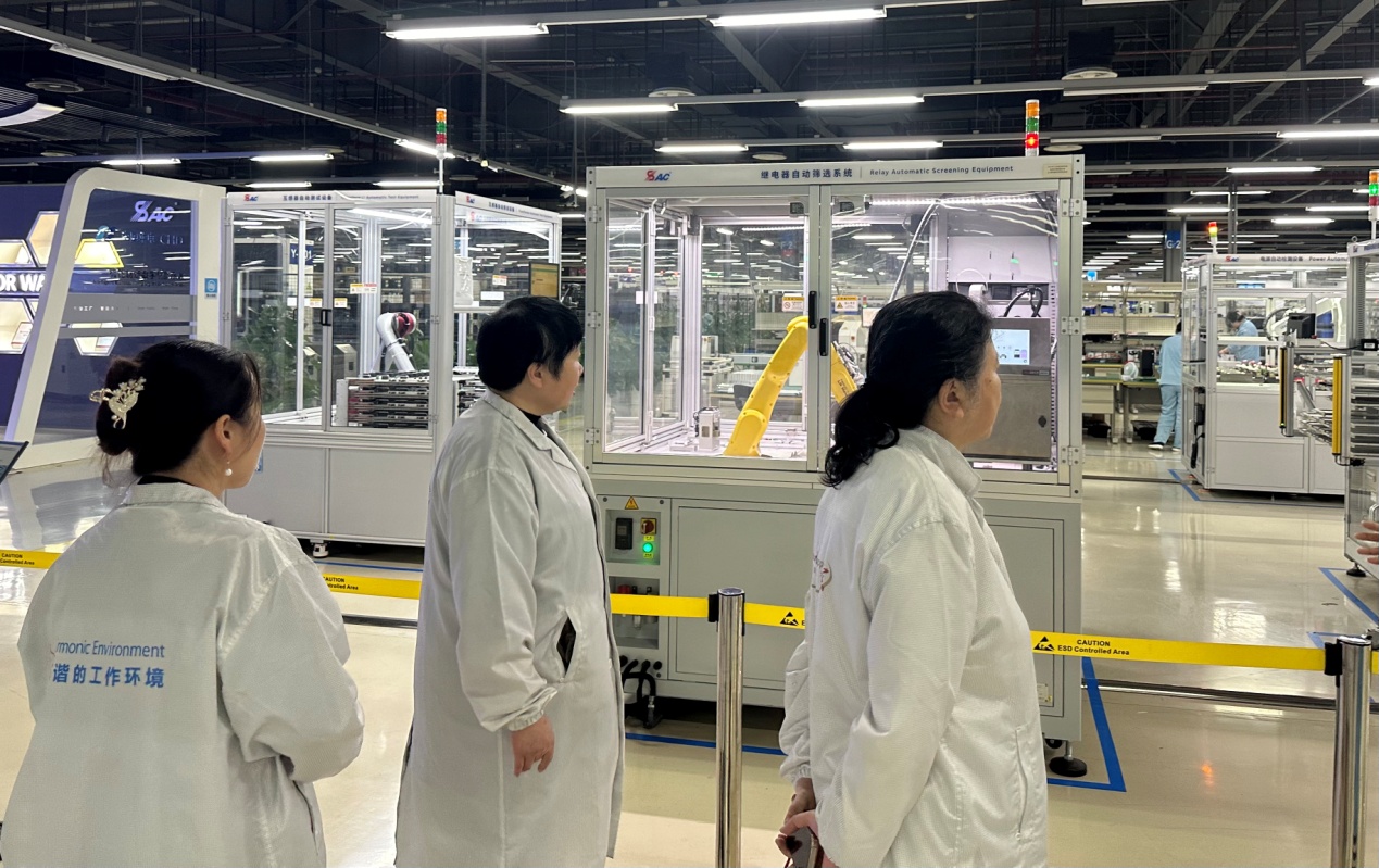 为进一步推进产教融合校企合作,6月20日,机械与电气工程艳照门 党总支书记严红霞、院长许映秋、副院长毛晓桦以及辅导员缪烨明一行赴南京国电南自自动化有限公司(以下简称“南自自动化”)开展访企拓岗专项行动。南自自动化党委委员张勇刚、党建办公室主任贺雯、研发部资深设计师胡兵、人力资源部刘大龙、市场部马加奇等相关负责人出席。在南自自动化市场部马加奇的带领下,许院长一行参观了南自自动化企业展厅、数字化技术研究中心、智能制造车间及党建工作详细了解了公司的业务领域、技术发展历程以及企业的核心竞争力和强大的研发实力。
