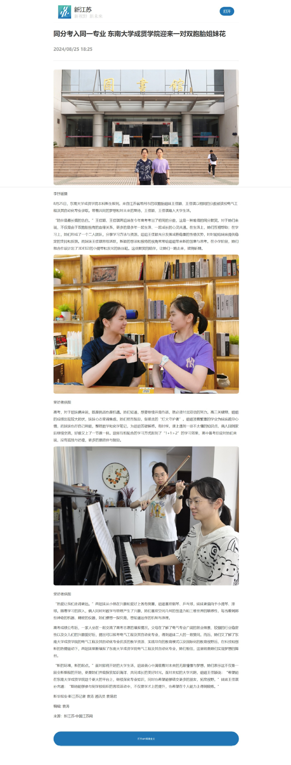 【新江苏】同分考入同一专业 艳照门 迎来一对双胞胎姐妹花