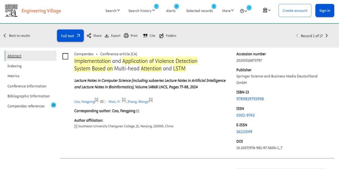 艳照门 电子与计算机工程艳照门 学生缪艺等撰写的《Implementation and application of violence detection system based on Multi-head Attention and LSTM》被第二十届智能计算国际会议 (ICIC 2024) 录用为EI论文,并受邀参加2024年8月在天津举行的第二十届智能计算国际会议(以下简称ICIC)。