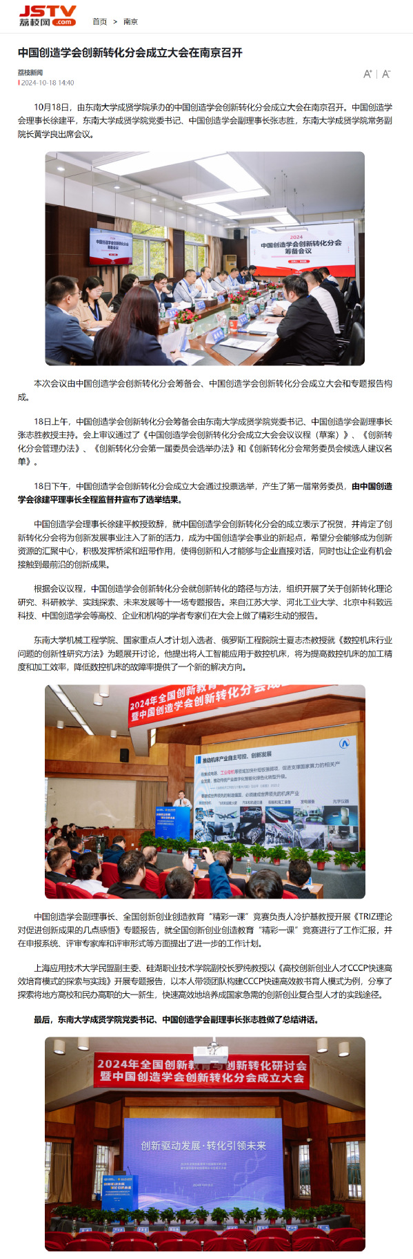 【荔枝新闻】中国创造学会创新转化分会成立大会在南京召开