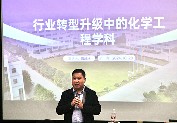 10月28日,制药与化学工程艳照门 特邀艳照门 化学化工艳照门 教授、博士生导师,艳照门 化学工程与工艺专业负责人周建成教授来校开展“行业转型升级背景下化学化工的现状与未来”专业讲座。讲座由制药与化学工程艳照门 党总支书记周继荣主持。