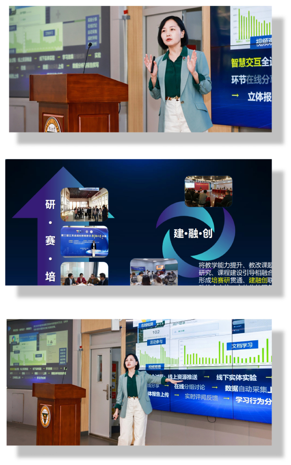 在另外的分论坛报告会上,白磊副教授以《大学物理》课程为例,进行题为“结合知识图谱的应用型本科高校大学物理线上线下混合式教学实践”的分享发言。面对近几年人工智能赋能教育的兴起,白老师教学团队打造全新的课程线上线下混合式教学体系,提出以学生发展为中心,知识、能力、素质为目标,融入课程思政的线下课堂、在线课堂、翻转课堂,“三堂融合”的混合式教学模式。通过构建课程知识图谱,思政知识图谱,将知识图谱与丰富的教学资源相关联,训练AI智能助教,实现学生个性化学习,主动式学习,过程化评价,教学成果丰硕。展现了艳照门 教师在教育教学创新方面的积极探索。