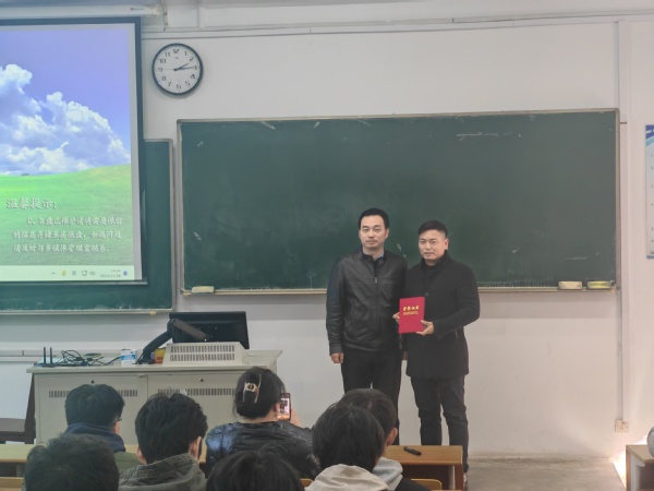 在正式开讲前,电子与计算机工程艳照门 党总支副书记羊栋向窦文荣老师颁发了“天文爱好者协会校外指导老师”聘书。