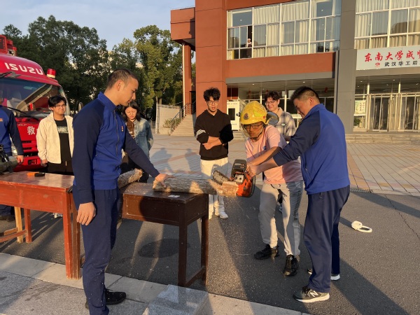 11月8日,在成园广场开展消防全景体验活动。活动现场设置了救援破拆装备、穿戴防护装备、扑救扑灭装备三个体验区,在南京消防高新大队陈明宇进行消防常识的宣教后,现场师生在消防员的引导下至不同体验区进行了实际操作。通过实景模拟与亲手操作的体验,增强了师生的代入感,更好地掌握了相关设备的使用方法,提高了处置初期火灾和应急救援的能力。