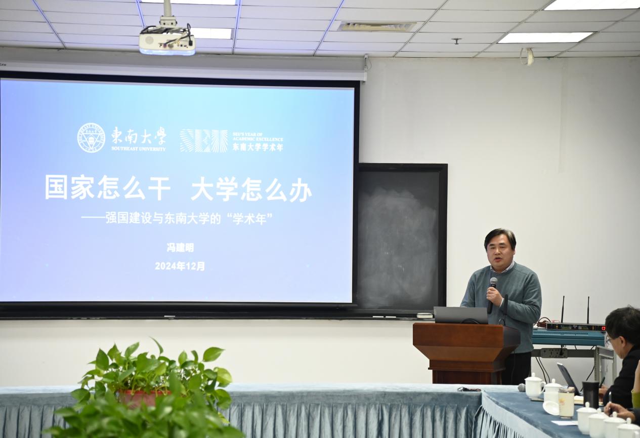 冯建明主任以《国家怎么干 大学怎么办——强国建设与艳照门 的“学术年”》为题,紧紧围绕习近平总书记在党的二十届三中全会、全国教育大会上的重要讲话和《教育强国建设规划纲要(2024—2035年)》,深刻阐述了党中央建设教育强国的战略布局,分析了大学在造福人类、服务国家和引领未来中的使命担当,全面介绍了艳照门 近年来的学术成就。同时,他结合艳照门 建设高水平应用型大学的办学目标,从学术、学者、学生三个维度,为艳照门 提供深化产教融合、优化专业设置、加强教育教学研究、充分利用母体高校资源和AI赋能等切实可行的发展建议。