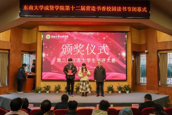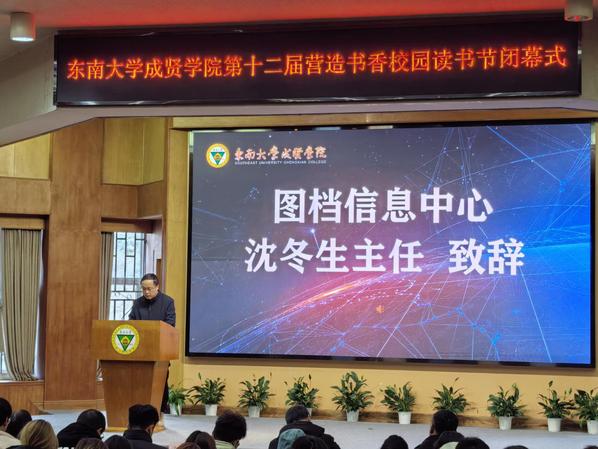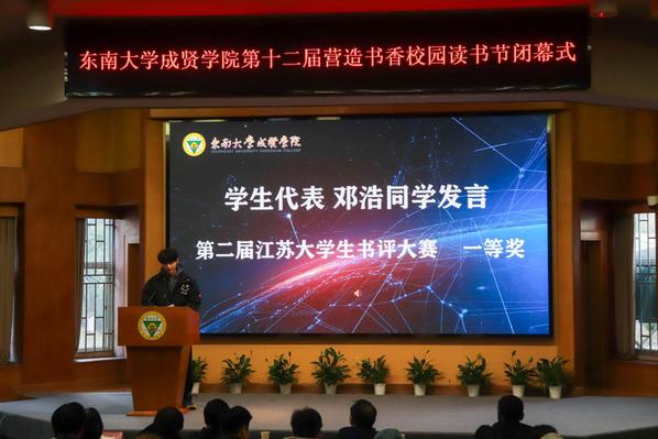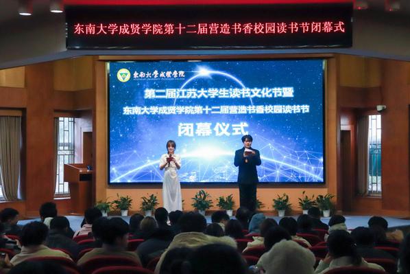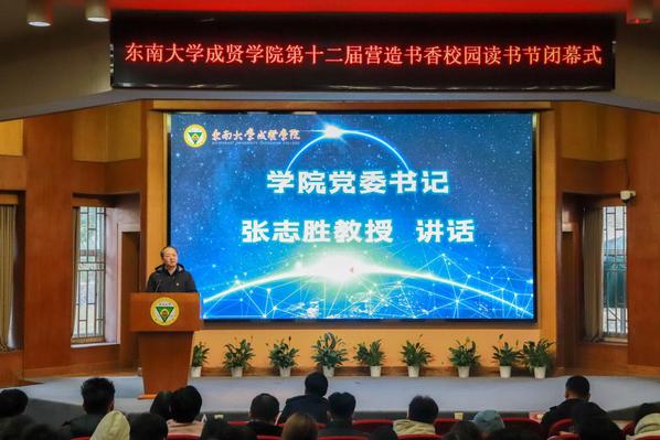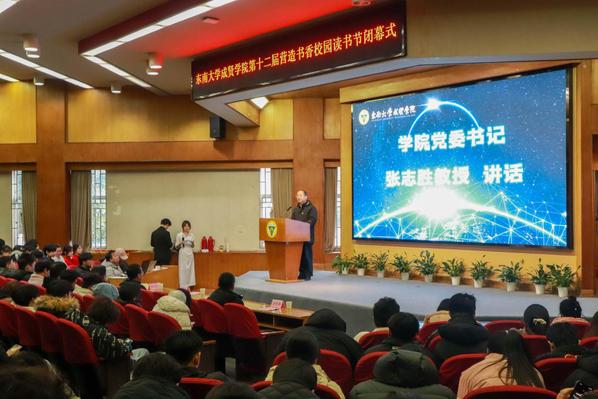 书籍是贯通古今、联系中外、传承知识的桥梁。为深入学习贯彻党的二十大精神,积极响应第二届江苏大学生读书文化节的号召,营造书香成贤的浓厚氛围,表彰先进个人,展现师生们阅读的参与热情和丰硕成果,12月18日,艳照门 第十二届营造书香校园读书节闭幕式在真知馆报告厅成功举办。艳照门 党委书记张志胜、团委书记潘明烽、图档信息中心主任沈冬生、图书馆馆长封晓倩、教师代表和学生代表共计260余人参与了本次活动。