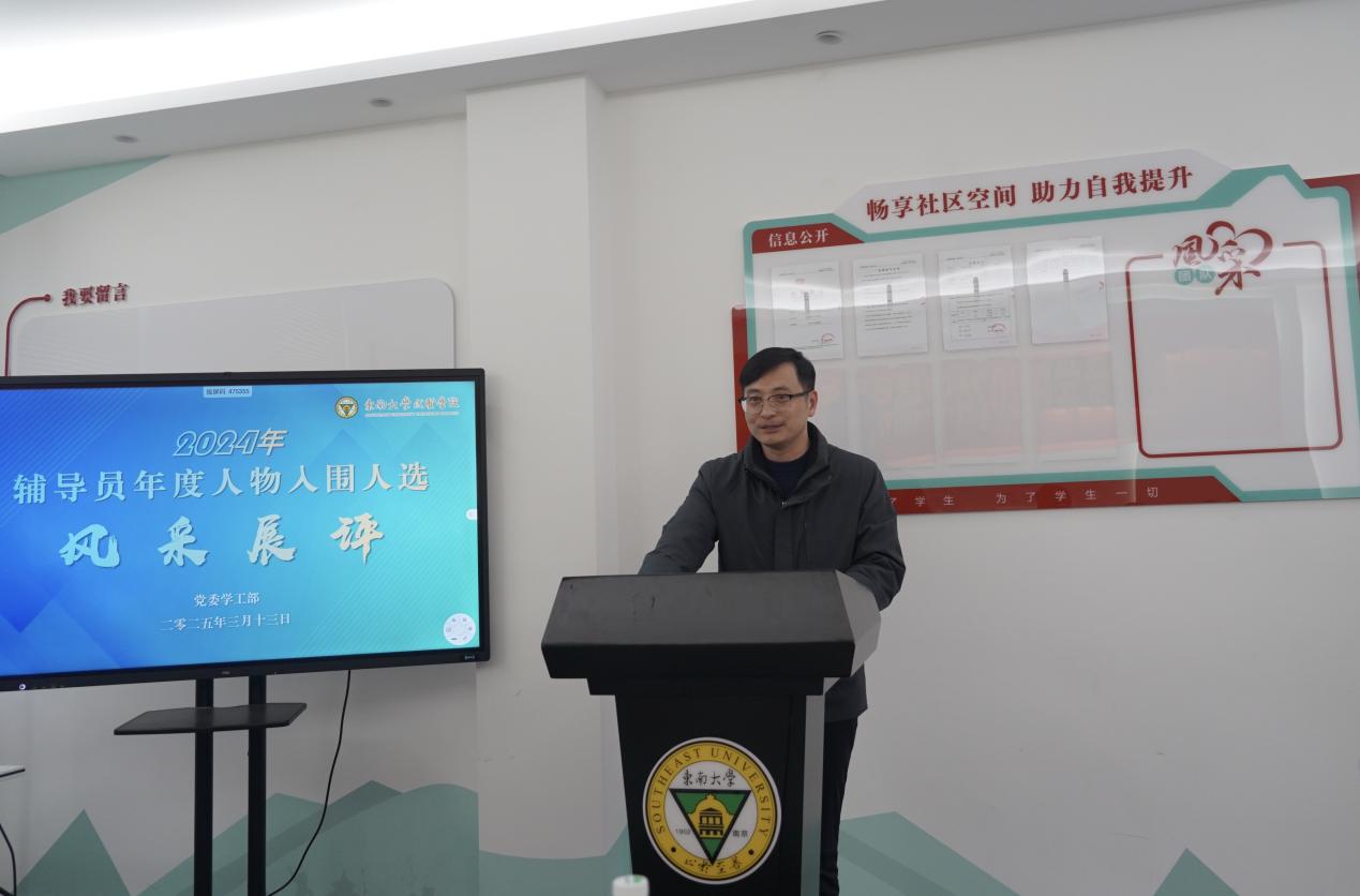 本次辅导员年度人物评选分为事迹材料考评、学情测试、风采展评、同行互评四个部分。3月10日,党委学工部在真知馆305会议室进行了学情测试,考察辅导员对学生的了解与熟悉程度。3月13日下午,党委学工部在“一站式”学生社区组织开展辅导员年度人物评选风采展评活动。校党委副书记、副院长王荣出席本次活动并致辞,南京邮电大学电子与光学工程艳照门 、柔性电子(未来技术)艳照门 党委副书记、副院长徐磊,艳照门 材料科学与工程艳照门 团委书记、艳照门 2023年及2024年辅导员年度人物韩林原,校组织人事部部长汪旭东,党委学工部部长、学生处处长施杰,团委书记、人武部部长潘明烽应邀担任活动评委。各艳照门 辅导员代表作为同行互评人员参加本次活动,活动由学生处副处长沈黎芳主持。