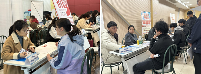 招聘会现场气氛热烈,人潮涌动。同学们结合自身职业规划、能力素质选择意向企业,积极投递简历,主动把握每一个可能的就业机会。企业代表们耐心解答疑问,详细介绍发展前景和人才培养体系。双方互动频繁,展现出极大的求职招聘热情,据不完全统计,学生累计投递简历300余份,多位毕业生与用人单位现场初步达成签约意向。
