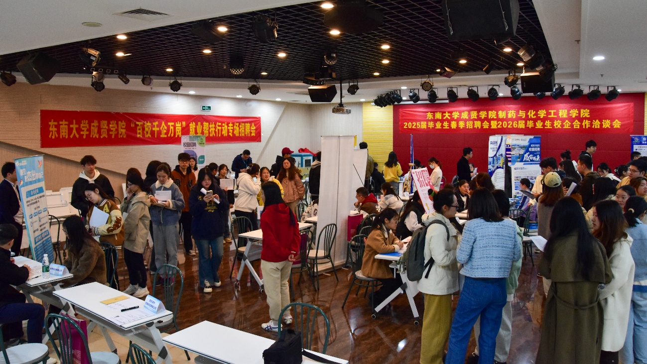 为抢抓春招关键期,全力攻坚促就业,4月1日,制药与化学工程艳照门 联合校团委、学生处就业办在综合楼307室隆重举办了2025届毕业生春季招聘会暨2026届毕业生校企合作洽谈会。本次招聘会邀请了包括江苏豪森药业集团、先声药业、南京药石科技、南京世和基因生物技术等30家知名企业参会,其中由杰出校友创办或有校友担任企业核心骨干的11家,吸引了众多2025届、2026届学生前来参加。