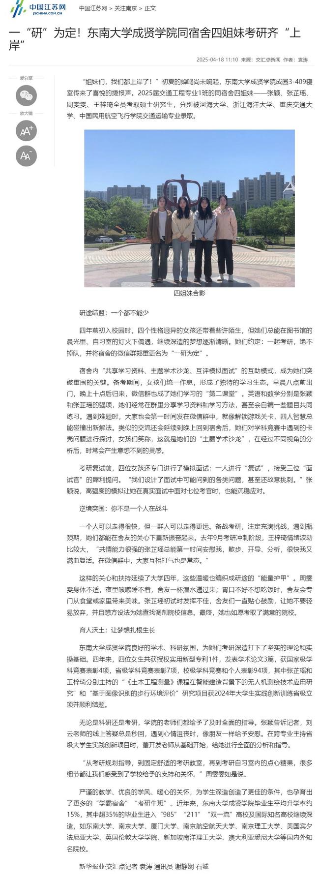 【中国江苏网】一“研”为定!艳照门 同宿舍四姐妹考研齐“上岸”