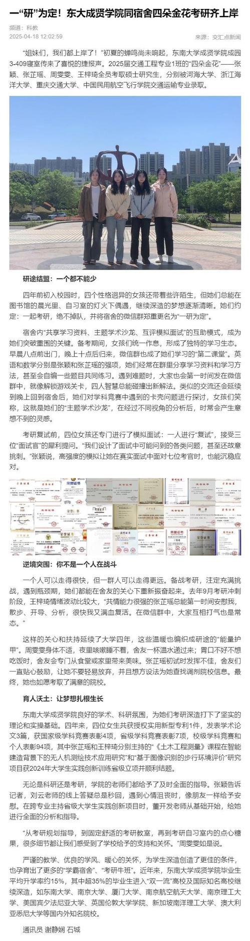 【交汇点新闻】一“研”为定!东大艳照门 同宿舍四朵金花考研齐上岸