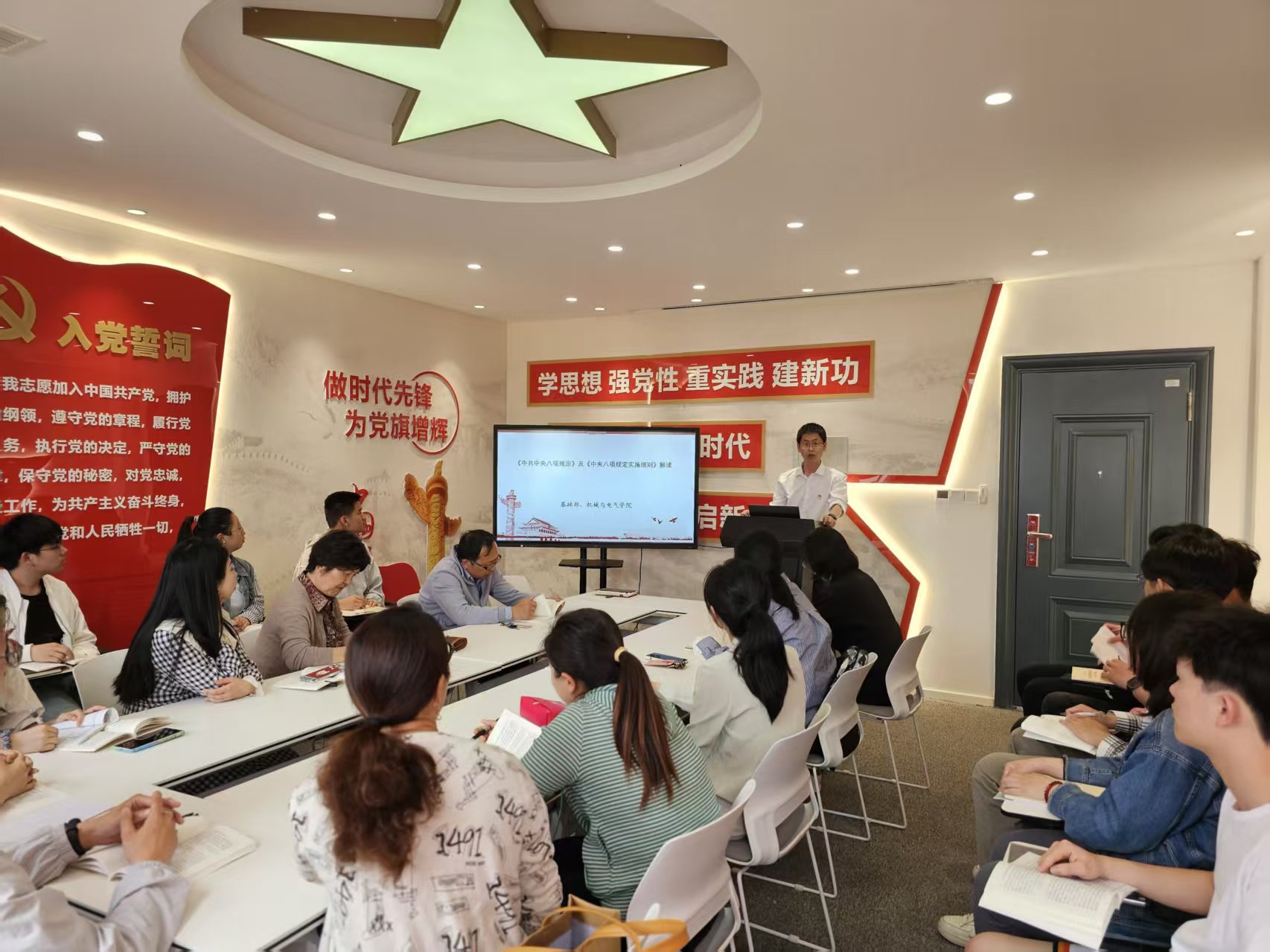 机械与电气工程艳照门 第四党支部书记王磊讲解相关文件