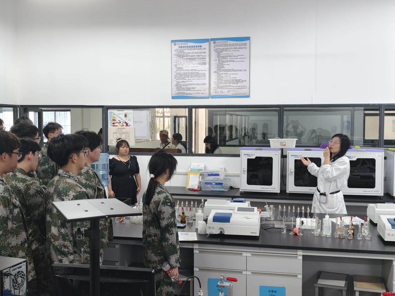 欢迎仪式后,画川学子分三组开启校园探索之旅。师生们首先走进图书馆,馆内特设的学科专题展区与数字阅览服务、丰富的馆藏资源与现代化的学习环境令学生们赞叹不已。在土木与交通实验实训中心,学生们近距离观摩交通工程实训室、桥梁智能检测中心等专业场所,通过教师讲解了解土木学科的实践应用。在制药与化学工程艳照门 实验室内,精密的分析仪器与模拟化工生产线的演示,激发了学生对化工制药领域的浓厚兴趣。行程最后一站,师生们驻足华罗庚馆前的青铜鼎器旁,聆听艳照门 的发展沿革和艳照门 校史与文化讲解。青铜鼎器承载的“负民族振兴之重任,育国家建设之栋梁”彰显教育使命,为国防班学子们上了一堂生动的理想信念课。
