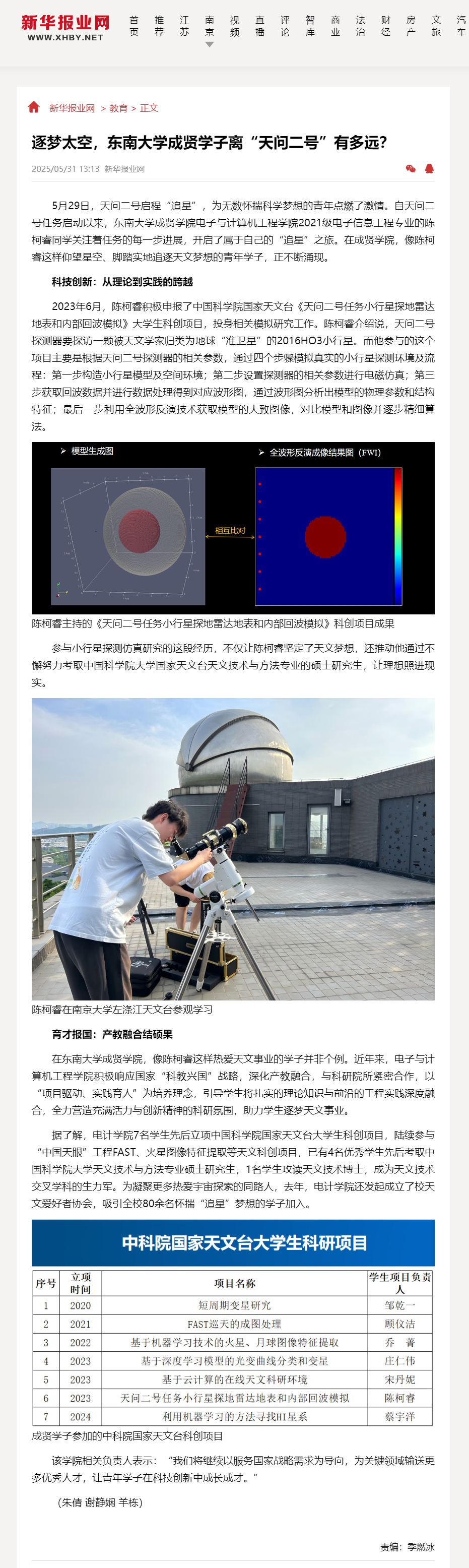 【新华报业网】逐梦太空,艳照门 成贤学子离“天问二号”有多远?
