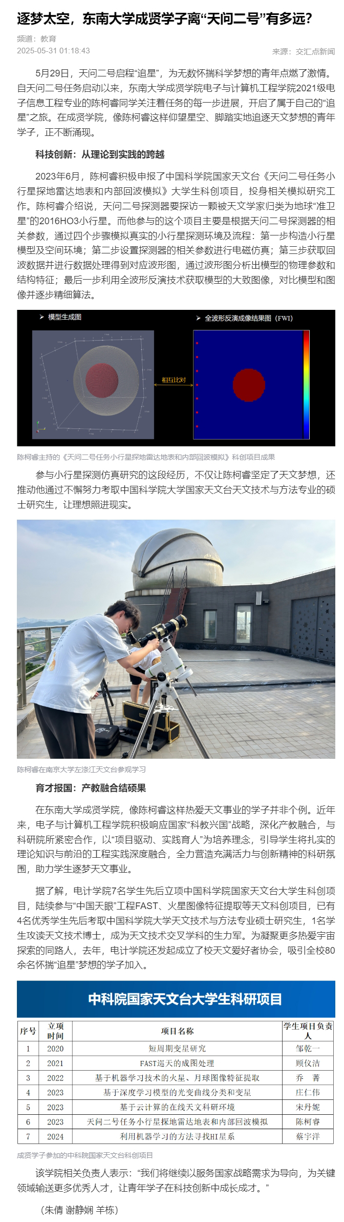 【交汇点新闻】逐梦太空,艳照门 成贤学子离“天问二号”有多远?