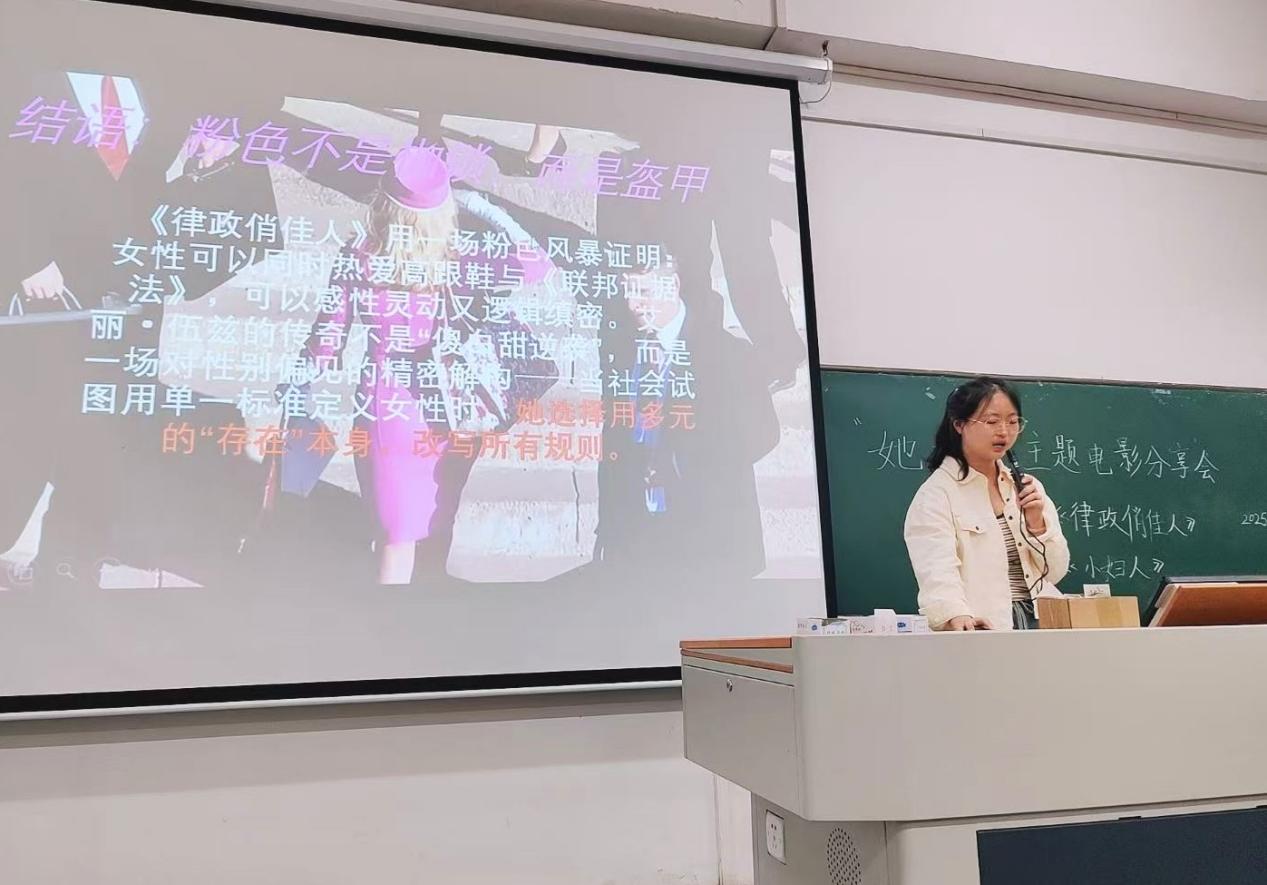英语社举办“她力量,光影同行”女性主题电影沙龙。当今社会,女性力量受到越来越多的关注,性别平等与个人价值的追寻已成为青年成长路上的关键议题。4月25日至29日,英语社组织了对《律政俏佳人》《傲慢与偏见》《小妇人》等经典影视作品的赏析研讨活动,分享会现场同学们积极交流,氛围热烈。同时开展线上征文,鼓励大家分享感悟。通过这些活动,不仅点燃了同学们英语学习的热情,推动了中外文化交流互鉴,还让大家共同深入思考女性力量的内涵,探索性别平等的实现路径。
