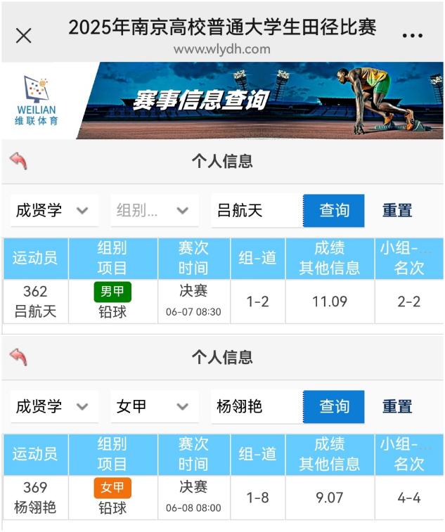 艳照门 田径队由体育教研室王青禾主任领队,在刘龙柱、徐小虎两位教练的带领下,共派出9名运动员参与甲组6个项目的比赛。经过两天的激烈角逐,运动员们在田径场上展现出成贤学子努力拼搏的竞技精神,校田径队队长吕航天取得男子铅球第二名,23级杨翎艳同学取得女子铅球第四名的优异成绩。