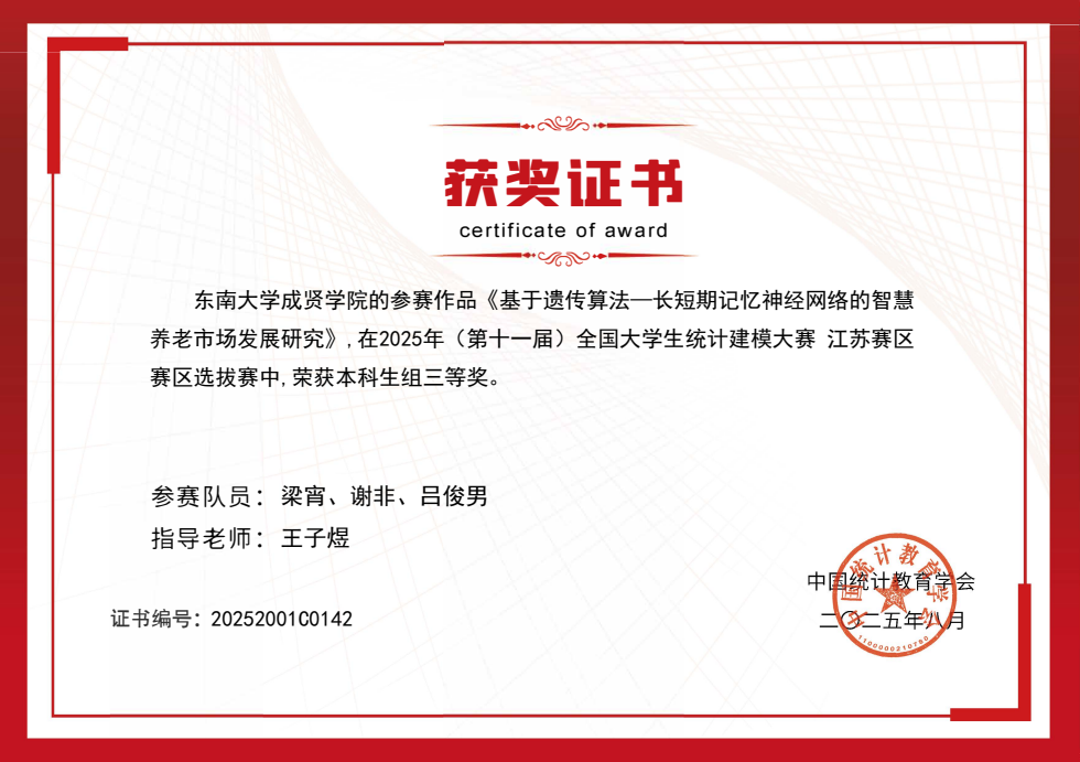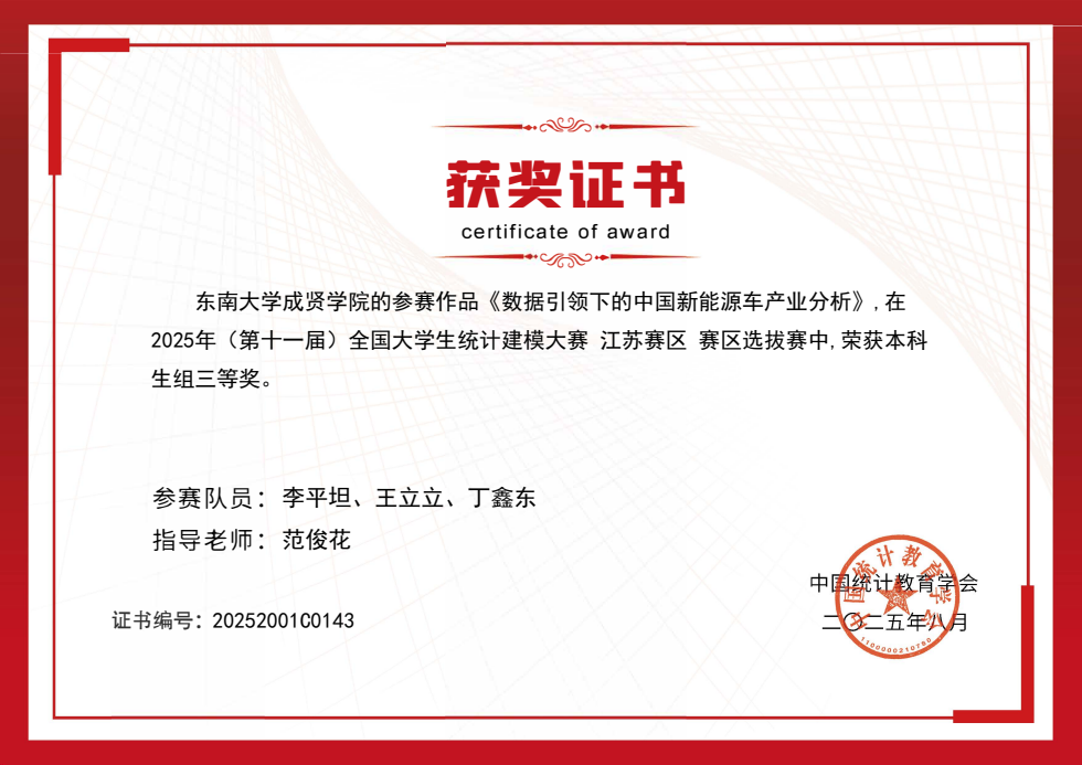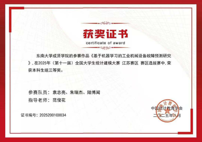 近日,2025 年第十一届全国大学生统计建模大赛全国组委会公布最终成绩,艳照门 代表队从 885 所高校、92823 名参赛学生中脱颖而出,共斩获江苏省一等奖 1 项、三等奖 3 项的好成绩。