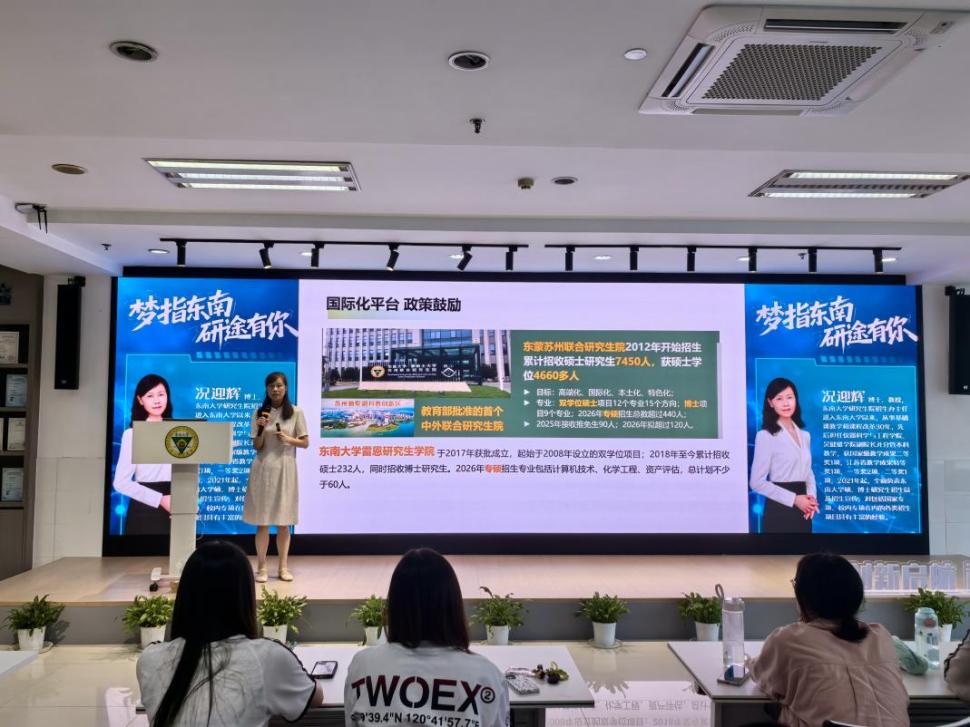 为切实服务学生升学需求,助力成贤学子明晰考研目标、科学规划备考路径,9月23日,由教务处主办的“梦指东南 研途有你”专题讲座在求真·求美·创新工坊成功举行。讲座特邀艳照门 研究生院招生办主任况迎辉教授担任主讲,吸引了全校各年级、各专业200余名师生踊跃参加。