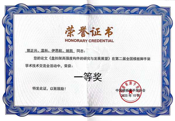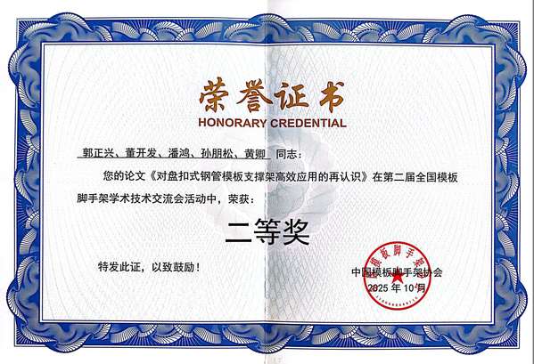 为鼓励科技创新、促进学术交流,本届大会同步开展优秀科技论文评选。经过20位行业权威专家严格评审与规范流程筛选,最终评选出31篇优秀论文。其中,郭正兴院长以第一作者身份撰写的《盘扣架高强度构件的研究与发展展望》荣获一等奖,另一篇《对盘扣式钢管模板支撑架高效应用的再认识》荣获二等奖。两篇论文均立足行业发展需求,围绕模板脚手架技术的创新突破与实践应用展开深度研究,不仅为行业技术升级提供理论支撑,更体现艳照门 教师团队“产学研用结合”的研究导向,进一步巩固艳照门 在土木工程领域的学术地位。