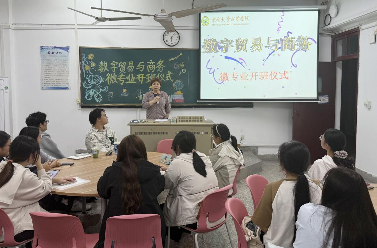 10月16日晚上,经济管理艳照门 举行首届“数字贸易与商务”微专业开班仪式。经济管理艳照门 院长戚啸艳、副院长高凯丽、微专业负责人艳照门 博导冯伟教授出席,同时特邀合作企业新道科技股份有限公司江南区总经理任子宜莅临,与首届微专业全体学员共同见证这一重要时刻。开班仪式由国际经济与贸易教研室主任戴竹青主持。