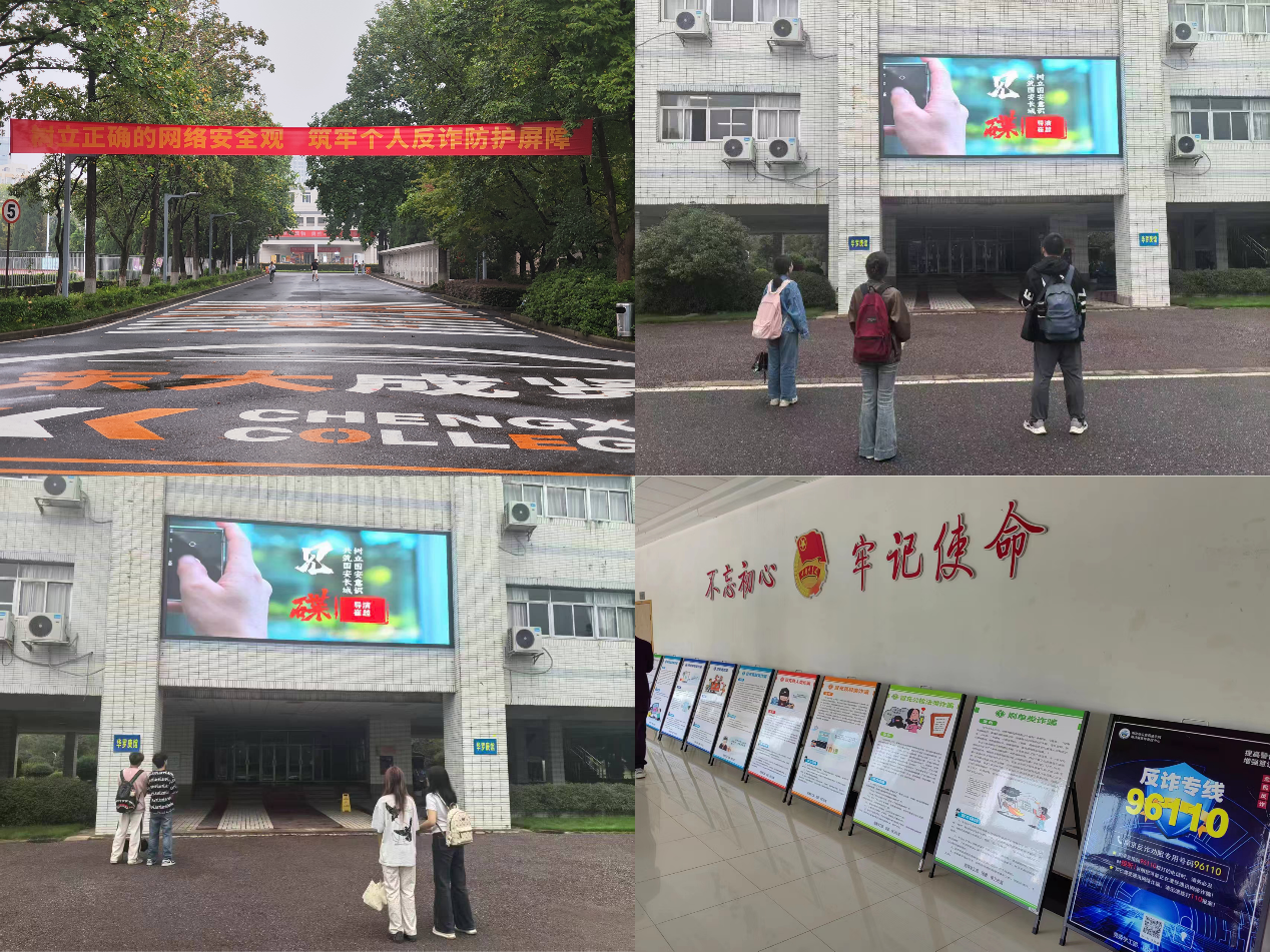 为让网络安全与反诈知识“看得见、触得到、记得住”,艳照门 在校园公共区域打造了立体化线下宣传阵地。在食堂等师生流量密集区域,设置“网络安全与反诈宣传专区”,通过展板展示十大高发电信网络诈骗类型(含刷单返利、虚假投资理财、冒充电商客服等)、八大反诈利器(国家反诈中心 APP、96110 预警专线等)及《中华人民共和国反电信网络诈骗法》核心条款,用图文并茂的形式拆解诈骗手法;在校园主干道悬挂“树立正确网络安全观,筑牢个人反诈防护屏障”主题横幅,在广场电子大屏循环播放反诈公益视频与网络安全科普动画,让师生在日常出行、就餐、学习过程中潜移默化接受安全教育,营造“人人谈安全、时时防诈骗”的浓厚氛围。
