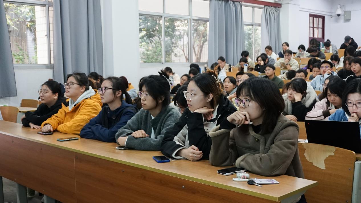 讲座中,李力成教授以“固体酸催化醋酸纤维素合成”为核心案例,系统分享了化学工程在生物质绿色加工领域的实践应用。他聚焦于固体酸催化体系的设计,解析其表面极性可控调节的技术逻辑,同时深入讲解纤维素在固体酸表面的乙酰化反应机理,拆解醋酸纤维素与金属氧化物“固—固界面作用力”的构成机制,最终落脚于“反应界面构建”的协同策略,展示如何通过优化反应物作用关系,提升生物质加工的效率与绿色性。整场分享既涵盖基础理论,又结合科研案例,为在场师生清晰呈现了化工技术赋能生物质高值化利用的完整路径。