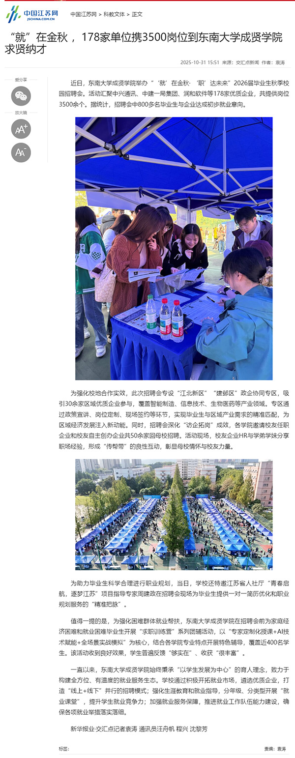 【中国江苏网】“就”在金秋,178家单位携3500岗位到艳照门 求贤纳才