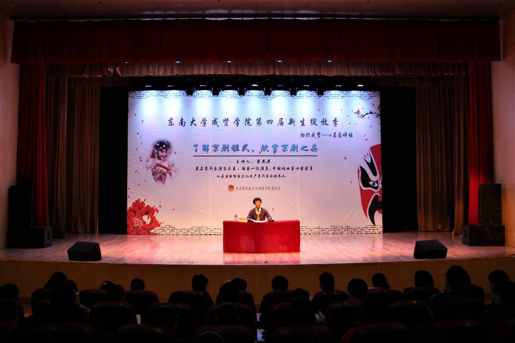 12月3日,由校团委主办的“了解京剧程式,欣赏京剧之美”讲座在综合楼报告厅举行,中国戏剧家协会会员、国家一级演员、中国荀派艺术研究会副理事长、江苏省非物质文化遗产京剧荀派传承人龚苏萍担任主讲,全校800余名师生共同品味国粹经典,感受曲艺文化。