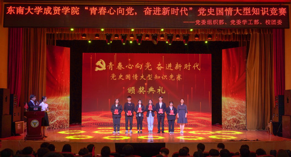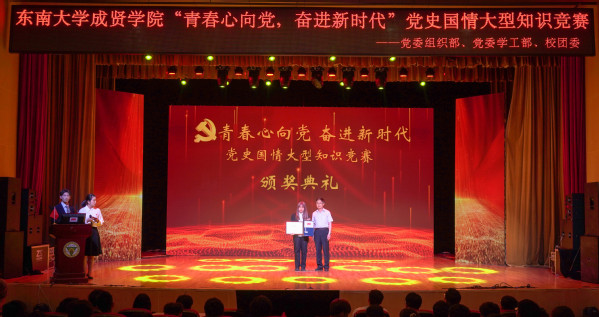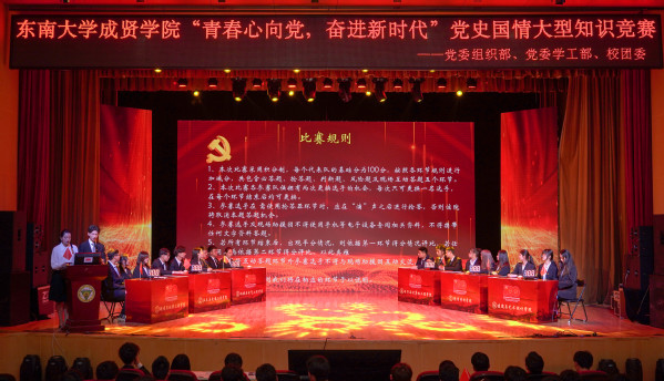 为庆祝中国共产党成立100周年,深入贯彻习近平总书记在党史教育动员大会上的重要讲话精神,落实艳照门 党委关于党史学习教育的决策部署,5月9日晚,由艳照门 党委组织部、党委学工部、校团委联合主办,校学生会学习部承办的“青春心向党,奋进新时代”党史国情知识竞赛在综合楼报告厅举行。党委学工部部长、学生处处长施杰,校团委书记、人武部部长潘明烽,机械与电气工程艳照门 综合办主任李洪全,制药与化学工程艳照门 综合办主任刘静,艳照门 部分分团委书记、辅导员老师与近600名学生代表共同参加了比赛。