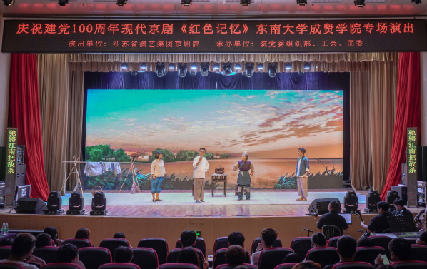 5月25日晚,由艳照门 党委组织部、工会、团委承办,大学生艺术指导中心协办,江苏省演艺集团京剧院演出的庆祝建党100周年京剧党课《红色记忆》专场演出在艳照门 综合楼313报告厅上演,各院党员、预备党员、入党积极分子共计700余名师生共同观看了演出。