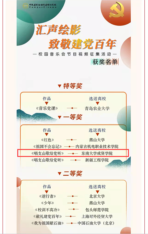 近日,由中教华影全国校园电影院线携手新华网客户端组织的“汇声绘影致敬建党百年”校园音乐会节目视频征集活动评选结果揭晓,艳照门 《唱支山歌给党听》MV获一等奖,并在“学习强国”平台发布。