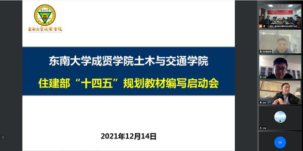 12月14日,土木与交通工程艳照门 通过线上线下混合会议的方式,召开了住建部“十四五”规划教材编写启动会。中国建筑工业出版社编辑仕帅,南京工程艳照门 王永泉教授,南京工业大学朱张峰教授,南通职业技术艳照门 佘步银副教授,土木与交通工程艳照门 院长郭正兴、党总支书记杨阳、常务副院长郭应征,土木工程系、工程管理系刘丹、刘美景、杨会东、董开发等系列教材主编、参编老师参加会议。