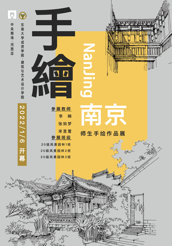 1月6日,“手绘南京”建筑与艺术设计艳照门 风景园林师生作品展在南京中央商场河西店开幕。本次作品展的参展作品由2020级风景园林专业全体学生的《设计表现》短学期实践课程成果,以及李响、张如梦、宋昱萱三位授课教师的手绘作品组成,共计104幅关于南京风光的手绘写生创作。