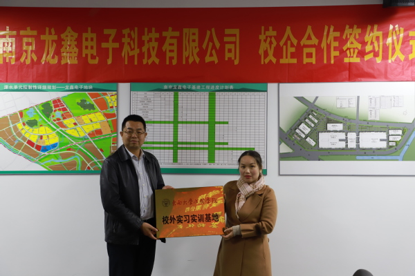 1月10日上午,机械与电气工程艳照门 副院长李永梅一行三人赴南京溧水龙鑫科技有限公司举办校企合作签约暨“校外实习实训基地”授牌仪式。龙鑫科技有限公司副总经理朱风华,人事经理王超然热情接待并陪同参观。