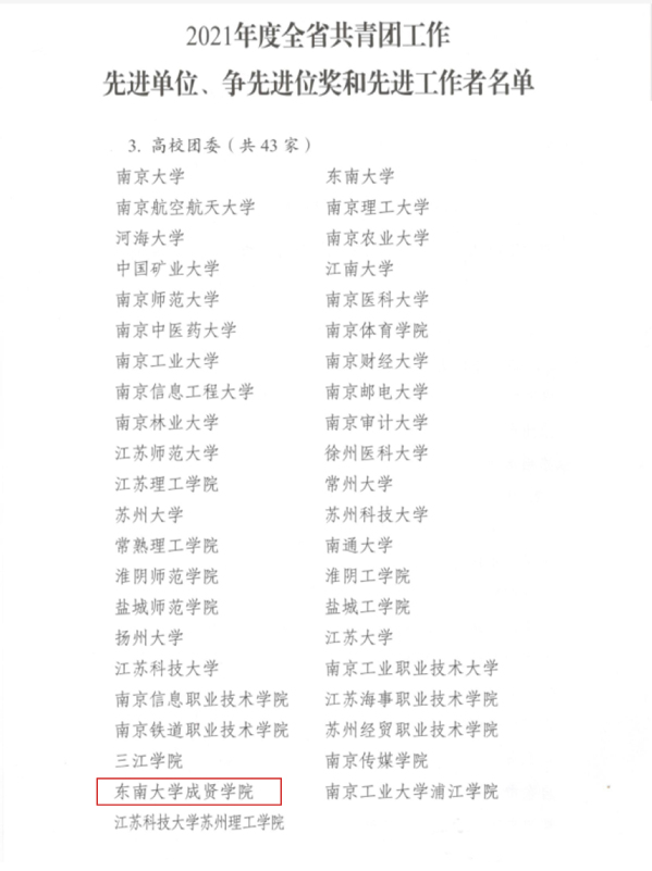 2021年底,共青团江苏省委组织开展了2021年度省部属高校共青团工作综合评估工作,经材料评审、指标评估和述职答辩,艳照门 团委获评“2021年度全省共青团工作先进单位”,校团委书记潘明烽被评为“2021年度全省共青团工作先进工作者”。