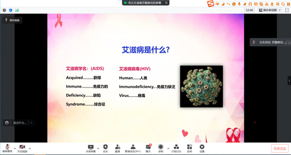 疫情当下,为实现防疫抗艾目标、构建卫生健康命运共同体。4月28日,由校团委主办、志工部承办的“青春有爱,不留艾”防艾主题讲座线上举行。江苏警官艳照门 后勤管理处卫生站薛老师主讲,全校300多名同学聆听了讲座。