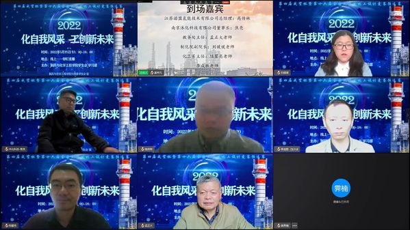 5月15日下午,艳照门 第四届成贤杯化工设计大赛暨全国大学生化工设计竞赛预选赛在线上圆满举办。江苏诺盟氢能技术有限公司总经理高传林,南京沐化科技有限公司董事长焦亮先生,艳照门 教务处处长孟正大,制药与化学工程艳照门 副院长刘媛媛,制化院化工系主任陆瞿亮和部分老师参加了本次活动。