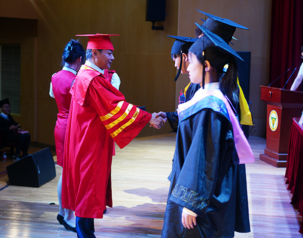 邢纪红书记为毕业生代表颁发毕业证书并合影留念