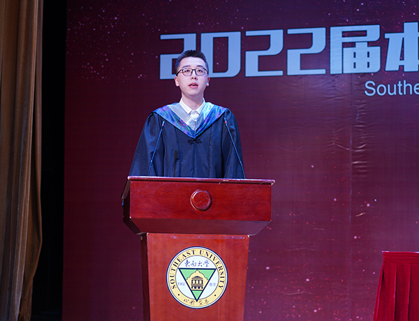 护理学2班周武作为毕业生代表表达了对校园的热爱、对师长的感激、对母校的祝福。即将踏入艳照门 继续进行学术研究的他勉励大家:在今后的学习工作生涯中要满怀感恩,将心比心;充满敬畏,谨慎细心;勇敢坚毅,保持恒心;不负热爱,不忘初心。