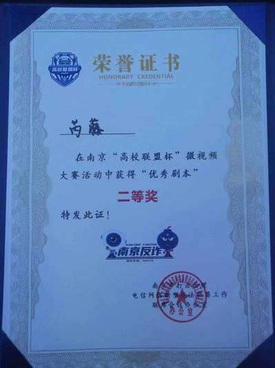 近日,南京市公安局在艳照门 九龙湖校区召开“无诈校园,平安有我”高校联盟杯微视频大赛颁奖仪式,艳照门 土木与交通工程艳照门 2021级工程管理2班芮藤同学荣获剧本类二等奖。