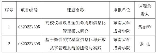 艳照门 两个研究课题(见下表)获2022年江苏省高校实验室研究会立项资助研究课题。