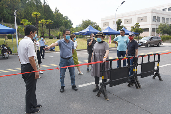 江北新区管委会副主任林其坤一行来艳照门 检查疫情防控工作
