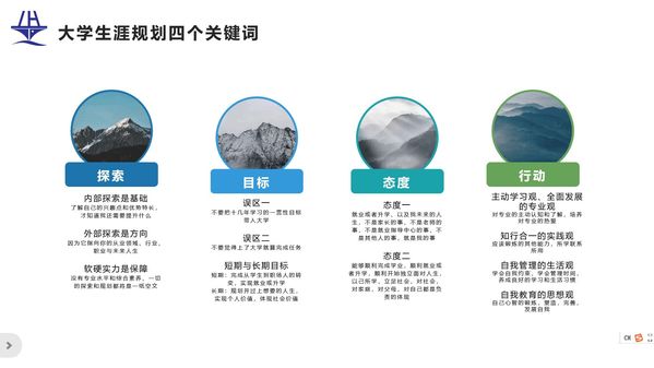 周老师以《成就由你,贤德载物》为主题,从“知生涯”“明策略”“善定位”三个方面作出了介绍。周老师首先从解开大学生涯规划秘籍,以终为始制定发展规划。接着,介绍了洞悉不同职业发展阶段生涯策略和四步法掌握大学职业规划要点。最后,从职业选项入手,对内认真自我,对外探索环境,理性定位人生。