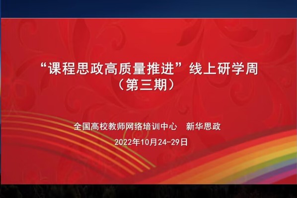 为全面推进艳照门 课程思政高质量建设,打通专业教育和思政教育的“最后一公里”,10月24日-29日,全国高校教师网络培训中心和新华网共同主办了“课程思政高质量推进”研学周(第三期)专题培训。教师发展中心选派艳照门 9名骨干教师参加了此次培训。