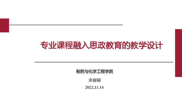 刚刚参加完全国高校教师网络培训中心和新华网共同主办的“课程思政高质量推进”研学周(第三期)专题培训的余丽丽老师以“专业课程融入思政教育的教学设计”为题做了主题报告,报告分为两个部分,第一部分她首先分析了课程思政所蕴含的理念特征及思政与专业课程融合需要达到的标准,然后基于制药与化学工程艳照门 的专业及学科特点,重点介绍了理工科类课程结合专业特点推进课程思政建设的要点及面临的困难与挑战,并提出了化学类课程开展课程思政的总体思路:一条主线、两个同步、三个阵地、四维矩阵。第二部分以其主讲的药事管理学课程为例具体谈课程思政教学设计。她首先结合药事管理学课程特点,在专业课程中融入思政情感与价值,提出课程核心价值观:爱国、法制、责任,基于此核心价值观,分为三条逻辑线对课程进行整体结构设计,即教师的组织引导线、学生在“平台”参与后的“自发情感”发展线,以及情感产生和发展的心理学依据和效应分析主线,并从课程思政资源库建设、课堂内活动、课堂外活动、研究、传播五个方面对课程进行了整体内容设计。随后,教师与辅导员进行了热烈的讨论交流,互相分享如何在日常教学及管理工作中做到生为首位、课比天大。