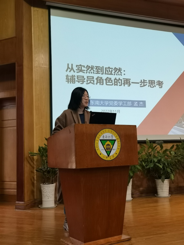 为进一步提升艳照门 辅导员业务能力和工作水平,促进辅导员队伍专业化、职业化建设,11月17日下午,艳照门 在真知馆一楼报告厅举办辅导员工作专题培训,特邀艳照门 党委学工部思政办主任孟杰、艳照门 四牌楼新生办副主任周文娜担任主讲嘉宾。艳照门 党委副书记、副院长王荣,学生处相关人员,二级艳照门 综合办主任、全体辅导员参加此次培训。培训由艳照门 党委学工部部长施杰主持。