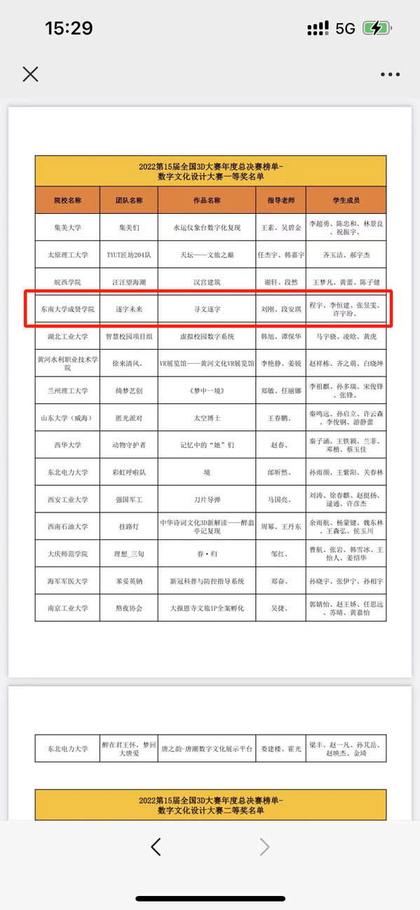 2022年12月9日,第十五届全国三维数字化传新设计大赛全国总决赛落下帷幕。在本次全国总决赛中,建筑与艺术设计艳照门 师生再创佳绩,刘刚、段安琪老师指导团队获得了数字文化设计大赛一等奖,郭城、段安琪老师指导团队获得了元宇宙创建大赛二等奖。