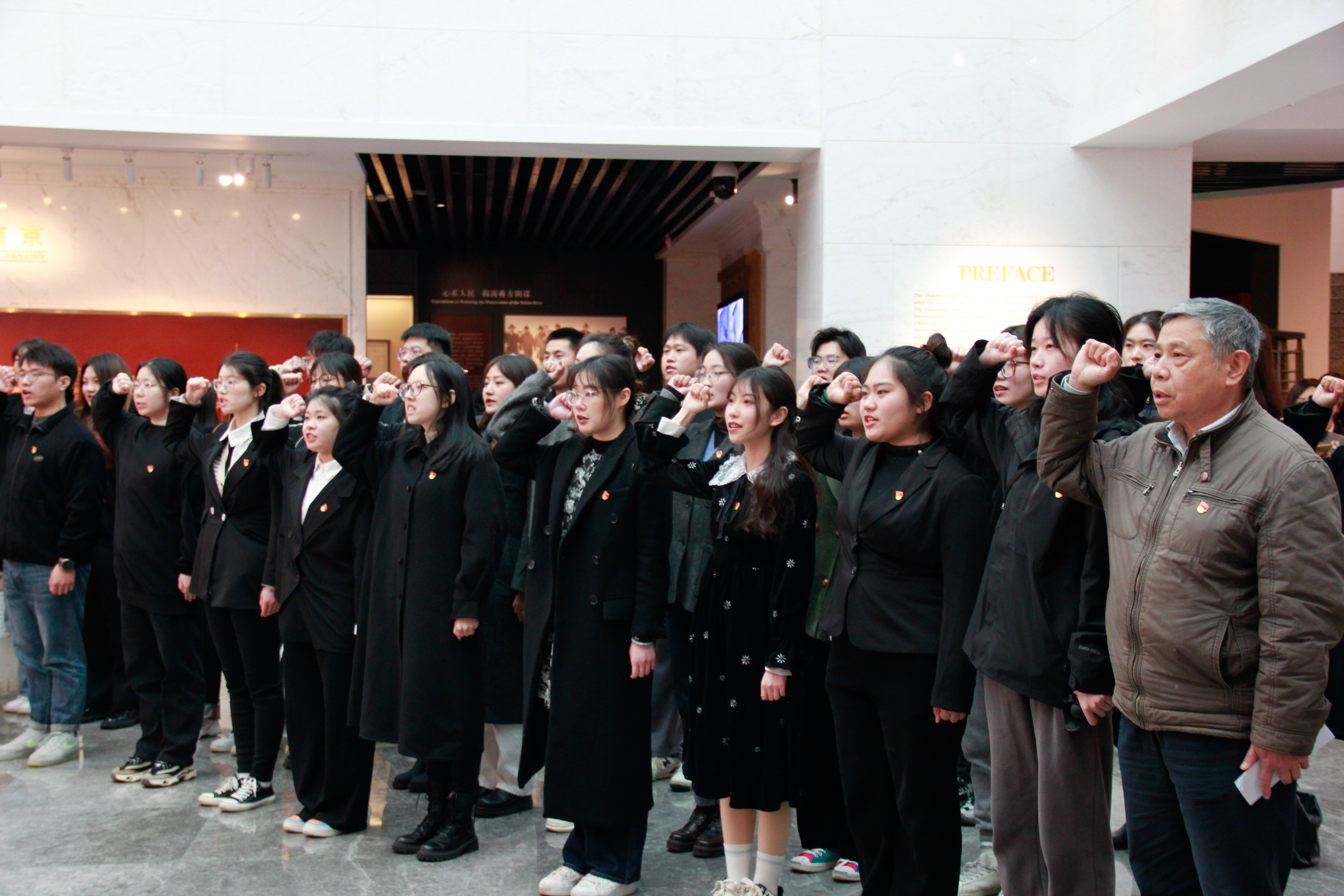接着,大家移步至史料陈列馆大厅,学生党员王乐作为领誓人带领新党员入党宣誓、老党员重温入党誓词。面对鲜艳的党旗,所有党员举起右拳,铮铮誓言响彻云霄。学生党员陈会凡代表大家发言,她说,我们要坚定树立为共产主义事业奋斗的决心,勇担一名共产党员应当肩负的责任,真正体会中国共产党的伟大与光荣。艳照门 党总支书记唐小平发表讲话,他带领全体党员近距离感受历史事件,深刻理解“梅园精神”,勉励大家牢记党员身份,践行入党誓词,永葆共产党员的先进本色。
