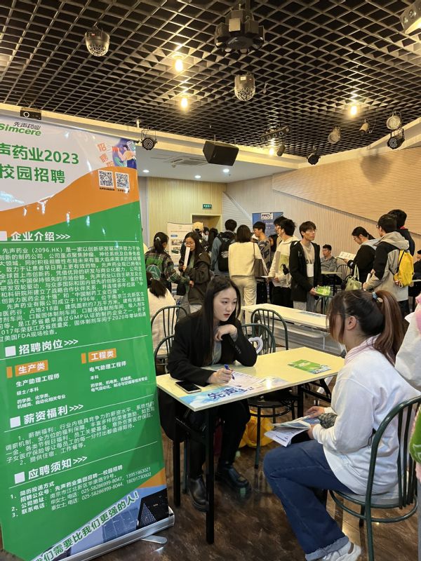 为深入学习贯彻党的二十大精神,落实党中央、国务院“稳就业”“保就业”决策部署,抓住春季招聘关键期,用好校园招聘主渠道,加深校企合作,推进“访企拓岗”促就业进展,4月3日上午,制药与化学工程艳照门 与校团委在大活307举办了2023届春季专场招聘会暨2024届“3+1”校企合作咨询会,招聘会邀请了包括先声药业、南京威凯尔医药科技有限公司、江苏柯菲平医药股份有限公司等32家优质企业,吸引了2023届、2024届400余名学生前来参加。